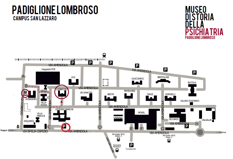 Mappa per raggiungere il Museo di Storia della Psichiatria - Padiglione Lombroso